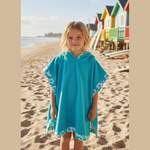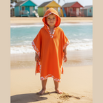 Poncho de bain en coton éponge ultra-doux, pratique et absorbant. Orné d'un biais imprimé hibiscus, il allie confort et style tropical. Idéal après la plage, la piscine ou le bain, il garde les enfants au chaud tout en séchant rapidement.