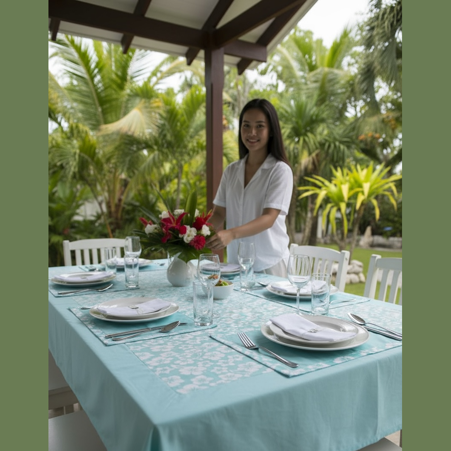 Apportez élégance à votre table avec cette nappe rectangulaire 100% coton au style tropical chic. Disponible en divers coloris et motifs, elle habille vos repas quotidiens comme vos occasions spéciales, en intérieur comme en extérieur.