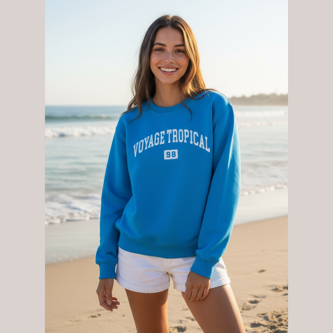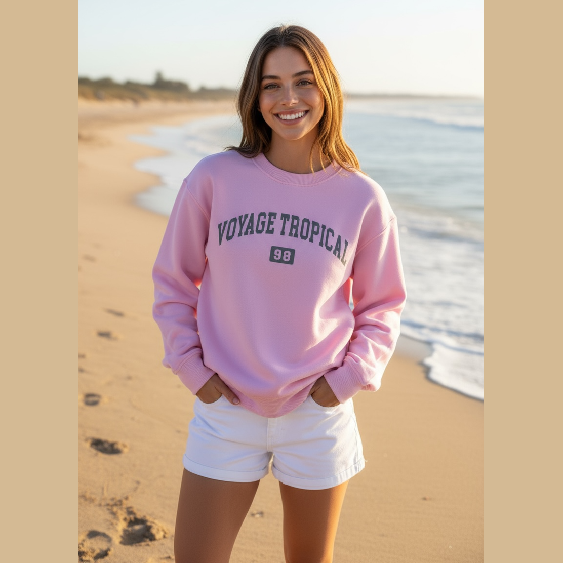 inherit;" dir="auto">Un sweat-shirt confortable et stylé, idéal pour les soirées fraîches ou les voyages. Imprimé au dos Voyage Tropical 98 et un motif hibiscus pour une touche unique.
