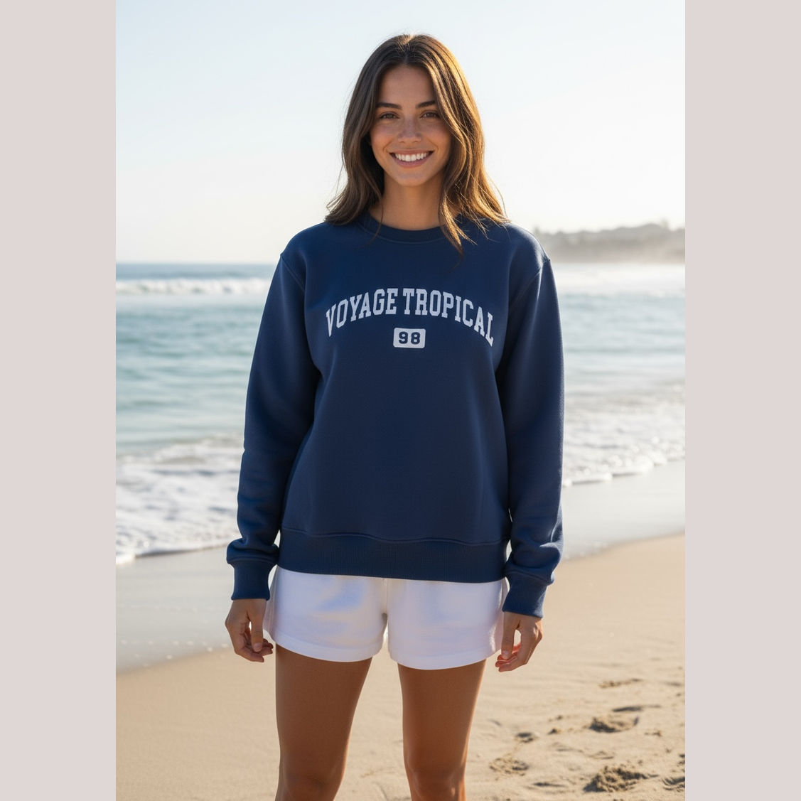 Unsweat-shirtconfortableetstylé,idéalpourlessoiréesfraîchesoulesvoyages.ImpriméaudosVoyageTropical98etunmotifhibiscuspourunetoucheunique. ">
