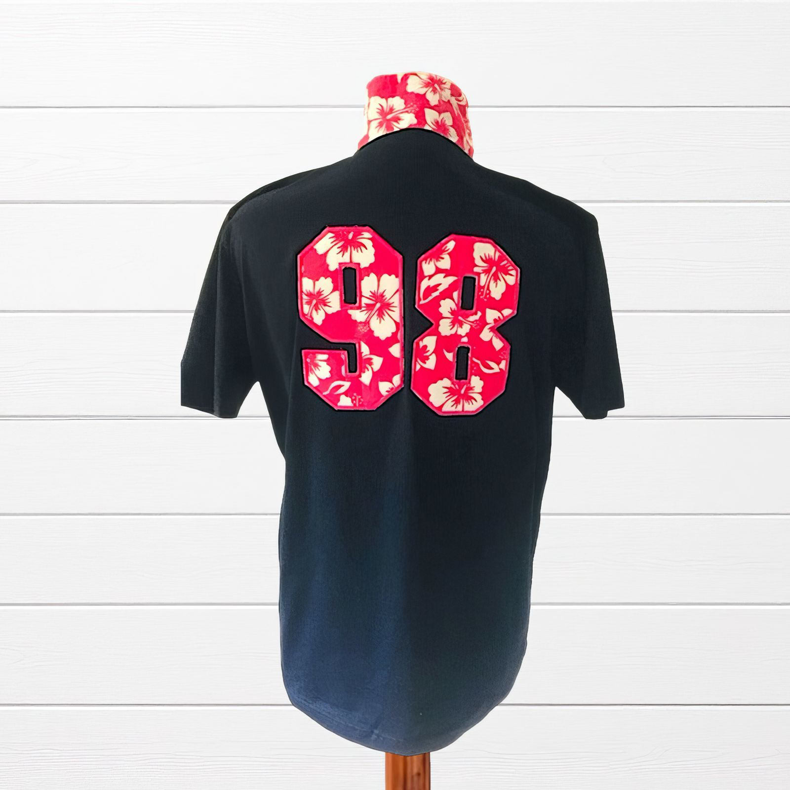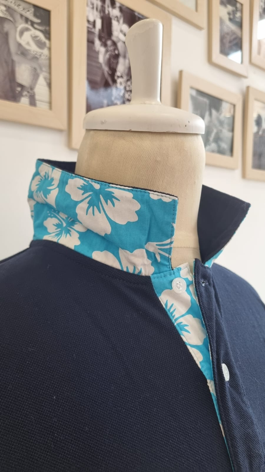 Men's Polo 98 with hibiscus print on collar and back – Sizes S to XL
